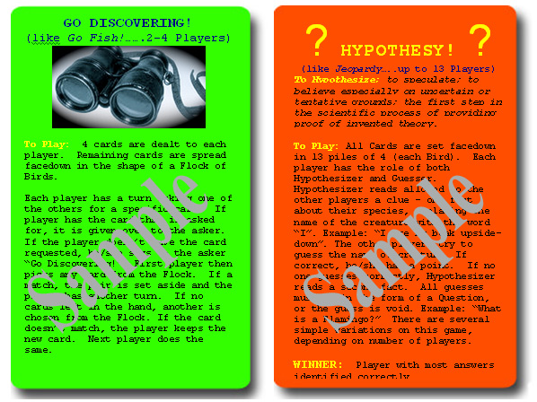 ©Scientifica Cards are similar to a traditional playing deck of cards, with 4 suits of 13 cards, all with different facts about each species; and 4 card games; Suitable for Grades 3-8. The games themselves, are easily comprehensible for the earlier grades, while the species identification aspects are brain teasers for the older grades.