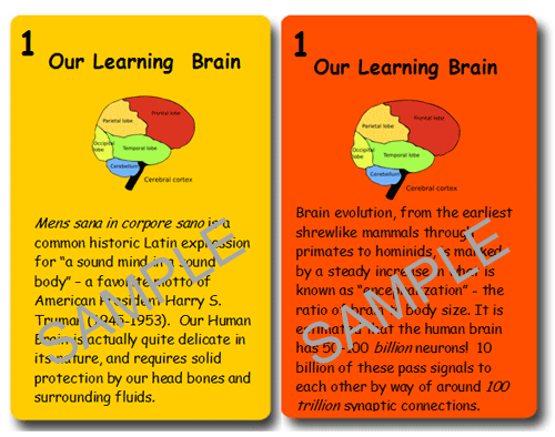 ©Scientifica Cards are similar to a traditional playing deck of cards, with 4 suits of 13 cards, all with different facts about each category of the Human Brain; and 4 card games. This ©Scientifica Deck is designed to achieve Learning Standard Requirements for Grade Levels 5-10 Mathematics, Communication and Science.